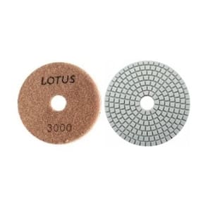 - Marca: Lotus; - Referência: 2323 [I]; - Lixa Diamantada para desbaste e polimento de mármore, granito, porcelanato, etc; - Produzida em resina e diamante sintético, para uso a seco ou refrigerado a água (mais indicado); - RPM máximo: 4.000; - Apoio com Pluma que facilita o manuseio e rápida substituição; - Possui medida de 100mm e opções de grão 50, 100, 200, 400, 800, 1500 e 3000.