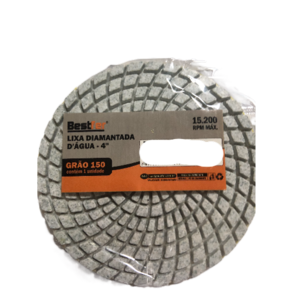 Disco Lixa Polimento Úmido Mármore 10cm Grão 150 - Tamanho das lixas - 100mm Super flexíveis Melhor rendimento do mercado !!! Matéria prima branca, não mancha Serve apenas para polimento úmido, não faz polimento a seco.