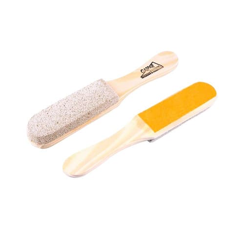 Lixa pomes Romeu & Julieta, de um lado possuí pedra pomes e do outro uma lixa amarela grossa. A pedra pomes é utilizada para esfoliar a pele com maior profundidade removendo células mortas, peles grossas e prevenindo rachaduras e ressecamentos. Já a lixa amarela é utilizada para deixar os pés macios, lisos e suaves.