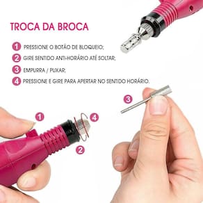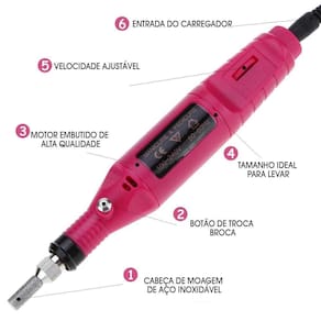 Lixadeira Lixa Motor Unha Elétrica Profissional Bivolt Rosa Extremamente Fácil de Usar Agora você pode ter unhas perfeitas em questão de minutos e com aparência profissional. Seu tamanho extremamente reduzido consegue em poucos instantes polir, modelar e retiras as cutículas de maneira simples, rápida e prática, excelente resultado obtido é devido a suas lixas que se acoplam à cabeça do aparelho e que proporcionam com muita precisão, rapidez, eficácia e segurança. Funciona com fonte bivolt acompanha o produto . Super compacto e ultra leve, Para unhas Naturais, unhas de porcelana, gel ou acrygel A lixa possui controle de velocidade, para melhor segurança no trabalho, variando de 3.000 a 20.000 Rpm Lixa elétrica de alta potência, recomendada para unhas postiças, tanto tips como as unhas de acrílico e gel Cor: Rosa Bivolt Itens Inclusos: 1-lixadeira Com Motor Elétrica 6-brocas 6-ponta para lixa 1-fonte Bivolt 110V / 220V