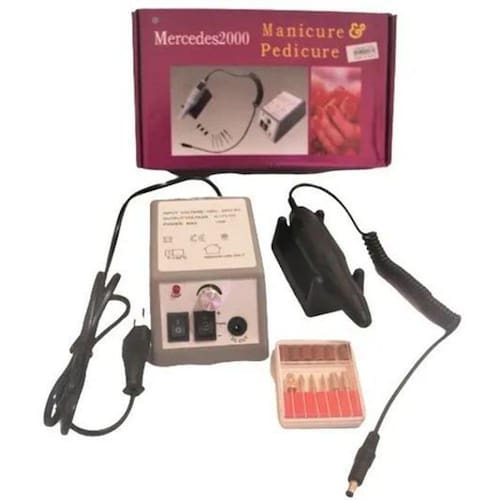 Lixadeira Elétrica de Unha para Manicure e Pedicure Profissional com Brocas e Acessórios e Motor Bivolt Rosa - Lixa Elétrica Profissional Mercedes 2000 Feita para manicures e pedicures Simples manuseio Compacta, fácil de transportar e guardar Uso doméstico e em salões Botão On/Off BivoltCom controle de velocidadePotência máxima 15WCor: Motor Cinza/ Caneta Preta/ Suporte de Mesa Preto