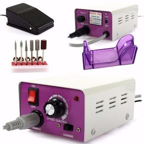 Lixadeira Elétrica Profissional Unhas Gel Acrygel PorcelanaMotor Lixadeira Unha Bivolt Até 25000 Rpm Broca Aço Inox. Lixadeira Elétrica Profissional Bivolt 110v/220v com Pedal para Unhas de Porcelana, Gel, Acrygel e Porcelana.Rotação Até 25.000 RPMTensão: Bivolt 110V/220vPode ser utilizada com ou sem o pedal.Pode ser utilizada para esculpir unhas e para o polimento.Possui uma central com controle de velocidade pelo pedal que permite o controle exato da velocidade que precisa para seu trabalho.Compacta e fácil de guardar ou levar com você.Ideal para um salão de beleza.Uso múltiplo: escultura, gravura, roteamento, amolar, lixar, polir, perfuração, Bivolt Regule a chave para 110v ou 220v conforme a voltagem da tomada que for utilizar. Cor: Cinza com frente Roxo Medida Motor: Comprimento 13,5cm Largura 9,5cm Altura 6cmMedida da Caneta: 14cm Kit com 12 brocas profissionais com base de aço inox e feitas de cerâmica. Com encaixe padrão em lixas / lixadeiras / motor elétricos. Ideal para polimento, modelagem, limpeza.Fique com as unhas lindas com o auxílio desse maravilhoso kit de brocas.Faça unhas lindas com o auxílio desse maravilhoso kit de brocas.Cor: BrancaItens Inclusos: 01 Lixadeira Elétrica Profissional Pedal Motor Bivolt01 Peça de mão caneta lixadeira01 Pedal para controle 01 Suporte de mesa 06 Brocas 06 Refil de lixa