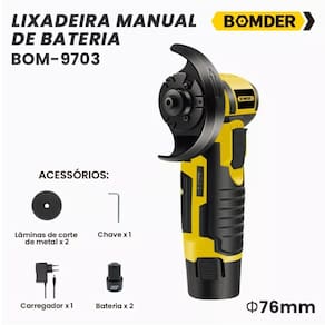 Lixadeira Manual 76Mm Bomder 2 Baterias Recarregáveis 12V