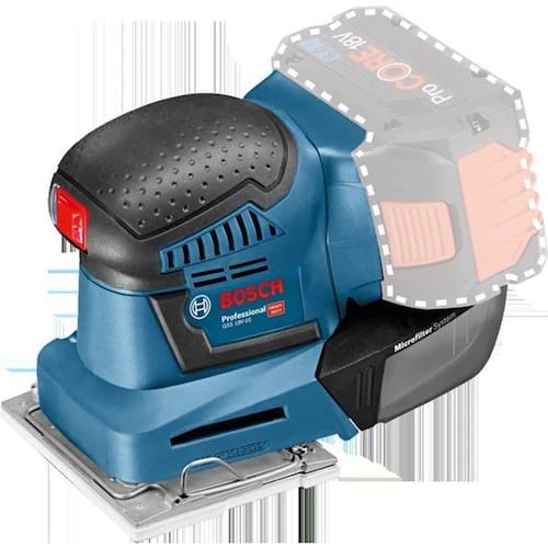 Vantagens A primeira lixadeira vibratória a bateria para ser operada com uma só mão. A lixadeira a bateria bosch gss 18v-10, 18v, é a primeira lixadeira vibratória a bateria para ser operada com uma só mão. Super leve e compacta, é indicada para todos trabalhar em todos os cantos e aplicações acima da cabeça. Vem com sistema de microfiltro bosch para aspiração eficiente de pó. Sistema de microfiltro bosch para aspiração eficiente de pó. Super leve e compacta, indicada para trabalhos em espaços estreitos e aplicações acima da cabeça. Ferramenta 100% compatível com baterias e carregadores 18v bosch.