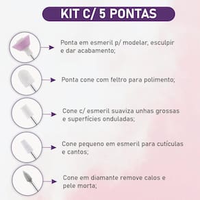 Deixe suas unhas lindas com esse kit de tratamento de unhas profissional, alcance resultados perfeitos em minutos com o aparelho rotatórios e suas 5 pontas intercambiáveis.