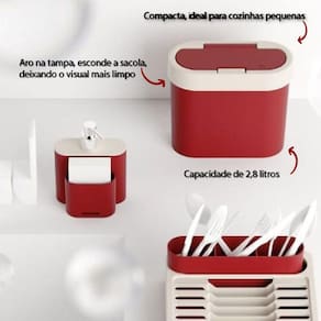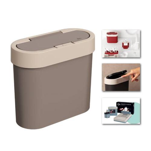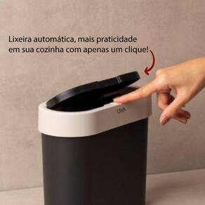 A Lixeira Flat é ideal para cozinhas pequenas onde há pouco espaço na bancada. Com design compacto, ela tem capacidade para 2,8 litros e seu formato retangular e arredondado permite que ela se encaixe em qualquer espaço. A tampa tem sistema de abertura e formato mais retangular, o que facilita no descarte de alimentos. O corpo possui aberturas laterais para encaixe da sacola plástica e o aro da tampa esconde a sacola, deixando o visual mais limpo. Bicolor, ela está alinhada com as tendências de Design que apresenta produtos em duas cores, permitindo combinações com diversos ambientes.