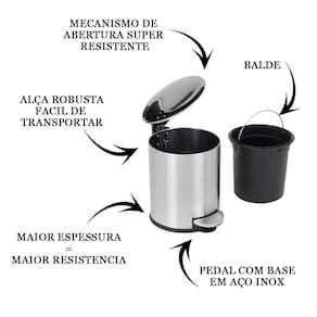 Lixeira 3 Litros Aço Inox Com Pedal Cesto Removível Mimo Lixeira Cesto De Lixo Banheiro Cozinha Pia Possui Recipiente Plástico Interno, não vaza líquido, não deixa cheiro, fácil de limpar. Lindas Lixeiras Com Pedal e Recipiente Plástico, ideal para saquinho de supermercado. Serve para cozinha, banheiro, escritório, quarto, todos os ambientes. BENEFÍCIOS:- Qualidade de ponta, o material torna sua limpeza mais prática.- Design elegante e produto extremamente versátil. ESPECIFICAÇÕES:- 3 Litros.- Tampa Click de Fácil Abertura e Fechamento.- Material 100% Em Plástico Pp polipropileno .- Dimensões: 24,5 Cm x 16,8 Cm Marca: Mimo Importação E Exportação