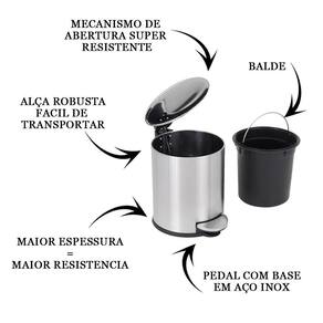 Lixeira 5 Litros Aço Inox Com Pedal Cesto Removível Mimo Lixeira Cesto De Lixo Banheiro Cozinha Pia