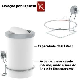 01 - Lixeira 8 Litros Com Suporte de Fixação por Ventosa
