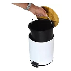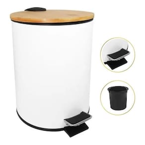 Lixeira 3 Litros Branca Com Pedal E Tampa De Bambu Redonda