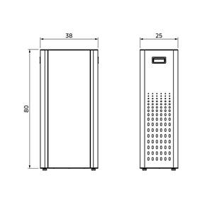 A lixeira é fabricada em aço inox polido, proporcionando durabilidade, resistência à corrosão e um visual elegante.