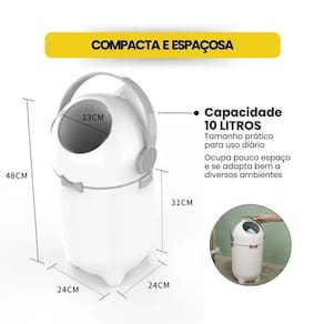 A Lixeira Anti Odor 10L foi criada para oferecer praticidade e sofisticação em qualquer ambiente. Seu sistema de vedação bloqueia eficazmente os odores, mantendo o espaço sempre limpo e agradável. Com capacidade de 10 litros, é compacta e funcional, perfeita para banheiros, quartos, escritórios ou cozinhas menores. O design clean em branco com detalhes cinza combina com diferentes estilos de decoração, enquanto os materiais de alta qualidade PP + ABS asseguram resistência, durabilidade e fácil higienização. Além da estrutura firme que garante estabilidade, sua estética moderna transforma a lixeira em um acessório discreto e elegante. Especificações Técnicas Capacidade: 10 litros Material: PP Polipropileno + ABS Acrilonitrila Butadieno Estireno Cor: Branco com detalhes cinza Acabamento: Fosco Dimensões: 48 cm altura x 24 cm largura Peso: 1,53 kg Vedação: Sistema anti-odor Uso indicado: Banheiro, quarto, escritório e cozinha Limpeza: Fácil higienização com pano úmido ou detergente neutro : 90 dias Dicas de uso e conservação: Não utilize produtos abrasivos ou palhas de aço, para evitar danos ao material. Utilize sacos de lixo adequados ao tamanho de 10L para garantir praticidade e eficiência.