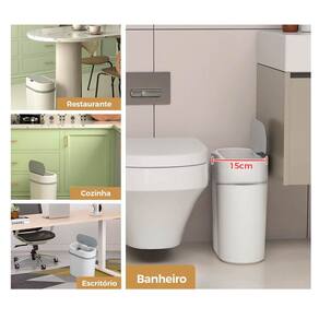 Informações Técnicas: Capacidade: 12 litros Dimensões: 31 cm x 15 cm x 23,5 cm Abertura: Automática por sensor de movimento Fechamento: Suave e silencioso Vedação: Contra odores Material: Plástico resistente, fácil de higienizar Alimentação: Pilhas (não inclusas)