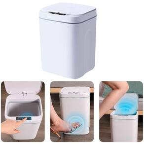 Lixeira Automática com Sensor de Proximidade 16L USB Essa lixeira inteligente abre e fecha a tampa automaticamente. O acionamento de abertura pode ser acionado de 3 formas, sendo: - Indução: Ela identifica sua mão para abrir a tampa; - Toque/Vibração: Você pode tocar o cesto com o pé e ela abre; - Manual: Você aperta o botão e ela abre/fecha.