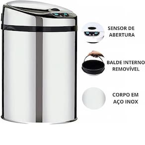 Lixeira Automática Inox Modelo Premium Kazalinda Higiene e praticidade são as principais vantagens de uma Lixeira Automática. Para abrir a tampa de uma lixeira comum, você precisa utilizar as mãos ou pressionar um dispositivo com pé. Nada prático ou higiênico. Por isso, o Fabricante investiu em pesquisa e aprimoramento tecnológico para desenvolver um produto que solucionasse esses problemas: uma lixeira de abertura automática com base na indução infravermelha. Quando a sua mão ou qualquer objeto estiver a mais ou menos 10cm acima da janela do sensor infravermelho, a tampa abrirá automaticamente, e fechará automaticamente depois que o lixo for jogado na lixeira. O sistema funciona por meio de chips, dispositivo de detector infravermelho, dispositivo de transmissão mecânica e sistema eletrônico. Possui duas partes importantes: o Tampo, parte superior e móvel da Lixeira e o Cesto, parte inferior e feita de aço inoxidável. É vantajoso por causa do seu alto desempenho, longa vida útil e baixo consumo de energia. Quando você quiser abrir a tampa para jogar o lixo dentro, você precisará manter a sua mão ou o lixo numa distância aproximada de 10cm acima do sensor infravermelho, a tampa irá abrir automaticamente dentro de 0,5 segundo, então irá fechar automaticamente dentro de 4-6 segundos depois que a sua mão sair da janela do sensor. Caso a sua mão não saia de perto da janela do sensor, a tampa permanecerá aberta. ESPECIFICAÇÕES TÉCNICAS: - Altura: 52 centímetros - Diâmetro: 29 centímetros - Alimentada: Alimentada por 4 pilhas D(não acompanham o produto) - Material: Corpo de inox brilhante, tampa em plástico cromado. Acompanha balde de polipropileno interno removível. - Capacidade: 30 Litros - Linha: Premium - Garantia: 3 Meses contra Defeitos de Fabricação.