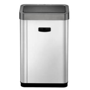 De aço inoxidável resistente à impressão digital escovado. Grande capacidade e design que economiza espaço. Interface amigável e simples para a operação conveniente e fácil. Aro removível para saco plástico que não deixa o saco visível. Requer 6 pilhas aa não incluídas .