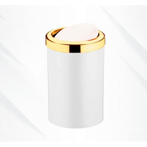 Praticidade e elegância para seu ambiente. Ideal para banheiro, cozinha ou lavabo, possui tampa basculante que facilita o uso no dia a dia, estrutura resistente e acabamento branco com detalhe dourado que valoriza a decoração.