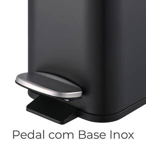 Lixeira Para Banheiro E Cozinha Retangular Preto Aço Carbono Frame 5 Litros - Brinox 3064/103 Cesto de Lixo Retangular em Aço Carbono Preto 5L com Pedal e Balde Linha Frame - Brinox 3064/103