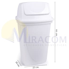 Conjunto com 10 lixeiras. A lixeira com tampa basculante é a solução ideal para manter seus ambientes limpos e organizados com praticidade e estilo. Com capacidade para 7,2 litros, esta lixeira é perfeita para uso doméstico ou em ambientes comerciais, como escritórios, cozinhas, banheiros e áreas de serviço. Fabricada em plástico de alta qualidade, a lixeira é durável e resistente, garantindo um uso prolongado e eficiente. A tampa basculante tipo vai e vem oferece conveniência e higiene, permitindo que você descarte o lixo de maneira rápida e fácil, sem a necessidade de tocar diretamente na tampa. Este mecanismo mantém os odores controlados e impede a visualização do conteúdo interno, contribuindo para um ambiente mais limpo e agradável. Além disso, a lixeira conta com proteção contra raios UV, o que assegura que a cor e a qualidade do material permaneçam intactas mesmo quando exposta à luz solar. Essa característica torna a lixeira ideal tanto para ambientes internos quanto externos, garantindo sua durabilidade e estética ao longo do tempo. Com um design moderno e compacto, a lixeira se adapta perfeitamente a qualquer decoração, ocupando pouco espaço e oferecendo grande capacidade de armazenamento de resíduos. A lixeira de 7,2 litros é ideal para atender às necessidades diárias de descarte de lixo, seja em casa ou no trabalho. A Lixeira é fácil de limpar, permitindo que você mantenha a higiene e a aparência do produto com pouco esforço. Seu material resistente é projetado para suportar o uso diário, garantindo que a lixeira permaneça funcional e esteticamente agradável por muito tempo. Material: polipropilenoCapacidade: 7,2 litrosComprimento: 23 cm / Largura: 18 cm / Altura: 40 cm