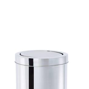 A lixeira basculante é ideal para estabelecimentos residenciais e comerciais que precisam de recipientes para colocar resíduos. Possui capacidade para 21,2 litros. Esse modelo de lixeira basculante inox possui um design discreto, elegante, resistente e fácil de limpar e manusear.