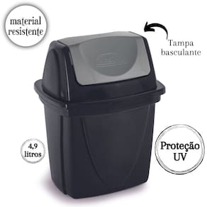 Fabricada em plástico de alta qualidade, a lixeira é durável e resistente, garantindo um uso prolongado e eficiente. A tampa basculante tipo vai e vem oferece conveniência e higiene, permitindo que você descarte o lixo de maneira rápida e fácil, sem a necessidade de tocar diretamente na tampa. Este mecanismo mantém os odores controlados e impede a visualização do conteúdo interno, contribuindo para um ambiente mais limpo e agradável.
