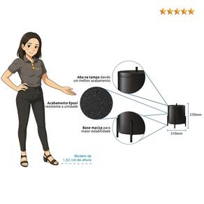 Com a Lixeira Paris o ambiente fica mais leve e prático, além de contar com um design moderno, é feita com material resistente a umidade, o cesto é em alumínio e se encaixa perfeitamente na base evitando contato ao chão, conta com pintura eletrostática (epoxi) no acabamento preto fosco, é uma peça fácil de instalar, pois não precisa de ferramentas evitando sujeiras e furos na parede, possui uma aba na tampa facilitando a colocação de sacolinha proporcionando melhor acabamento e por ter uma base maciça seu peso fica consistente, dando uma boa estabilidade no produto. Pode ser utilizada no banheiro, cozinha, escritório, lavanderia deixando o ambiente mais organizado e decorado. Aproveite e compre já essa linda peça.