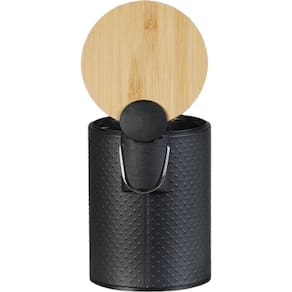 Lixeira Classic Aço Inox Tampa em Bambu 5L 25x20x20cm Preto -