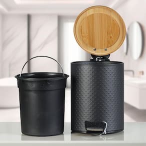 Compre a Lixeira Classic Aço Inox com Tampa em Bambu 5L na Home&Cia