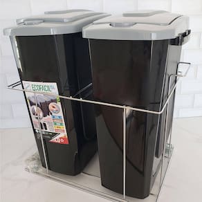 Esta lixeira deslizante de armário dupla da linha Elevatta é a escolha ideal para quem deseja unir beleza e funcionalidade em sua cozinha. Indicada para instalação em armários, possui suporte aramado em aço cromado com corrediças deslizantes e duas lixeiras em polipropileno. Um modelo bastante completo e eficiente, que permite fazer a separação correta dos seus resíduos orgânicos e recicláveis em um só lugar. A estrutura cromada possui revestimento para prolongar a durabilidade e resistência.