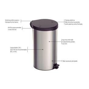 - Saco de lixo recomendado: 20 - 40 L