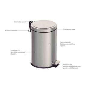 O sistema Stay Open mantém a tampa aberta quando necessário, facilitando o descarte de resíduos. Além disso, possui um balde interno removível para facilitar a limpeza, alça de transporte e ventosa na base para melhor fixação no chão. Com capacidade para 12 litros, é uma escolha prática e funcional para qualquer ambiente.