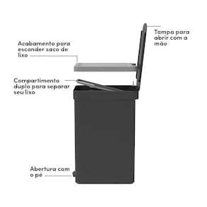 Promover um ambiente limpo, organizado e cheiroso é o segredo para uma sensação de satisfação e bem-estar. Por isso, é imprescindível que tenhamos sempre por perto uma lixeira que promova higiene, organização e beleza. Com design contemporâneo, moderno e minimalista, as Lixeiras de Pedal Trium foram desenvolvidas para solucionar problemas do cotidiano com mais praticidade e sustentabilidade. Sua capacidade de 30 Litros é ideal para diversos ambientes da casa ou escritório. Além disso, possui tampa especial que não deixa o saquinho de lixo exposto na parte externa da lixeira, e anel de fixação que proporciona mais segurança ao colocar o saco para lixo, trazendo mais sofisticação ao evitar que o saco fico aparente. Feita com material de alta qualidade e acabamento fosco, a lixeira garante a estabilidade e resistência necessária para o dia a dia. Leves, práticas de transportar e fácil de higienizar as Lixeiras Trium perfeitas para organizar diversos tipos de ambientes.