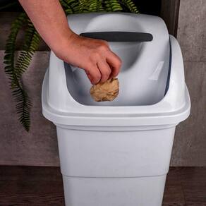 A Lixeira 30 Litros Plasvale possui tampa basculante e alça que facilita o manuseio, além de pegas nas laterais no formato dos dedos que auxiliam no seu transporte.