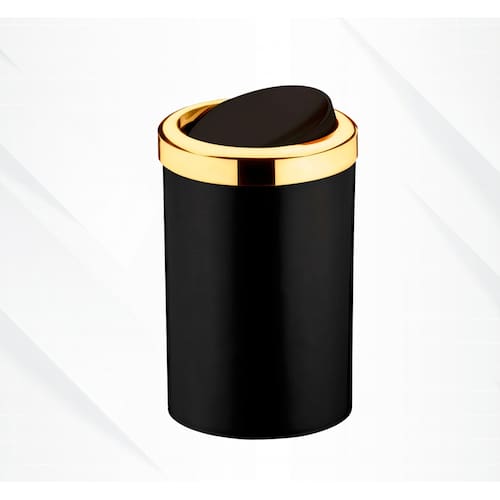 Lixeira de Banheiro ou Lavabo Preta com Tampa Basculante Luxo – Dourado