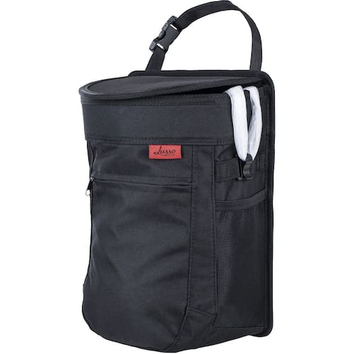 Lixeira de carro Lusso Gear à prova de derramamento de 9,5 L com tampa e forro pretos