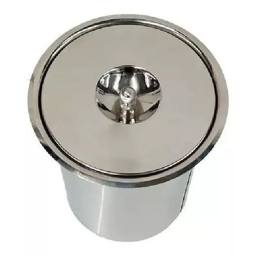 A lixeira possui aros e tampa em aço inox 304 polido e acompanha balde em alumínio repuxado, não tem pontos de solda para melhor acabamento e não oferece risco de vazamentos.