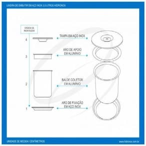 Descrição Lixeira de embutir tampa preta 08 litros