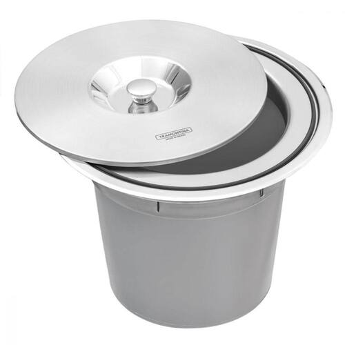 Tenha mais praticidade e estilo na sua cozinha com aLixeira de Embutir Tramontina Clean Round em Aço Inox com Balde Plástico 8L. Produzida em aço inox, aLixeira de embutir é perfeita para dar um toque de estilo ao seuLar. O balde plástico removível facilita aLimpeza e retirada deLixo. Possui aro interno com anel de vedação, que garante que os odores fiquem dentro daLixeira. Comporta 8L. Fabricada no Brasil, é o produto ideal para as atividades do dia-a-dia.