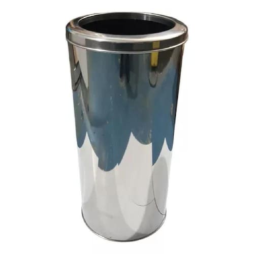 A Lixeira possui Tampa e corpo em aço inox polido e espelhado