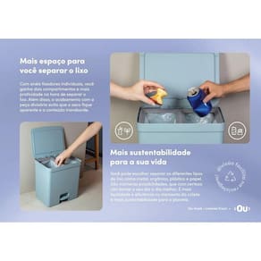Com design contemporâneo, moderno e minimalista, as Lixeiras de Pedal Trium foram desenvolvidas para solucionar problemas do cotidiano com mais praticidade e sustentabilidade, permitindo separar o lixo de forma prática, facilitando a reciclagem. Além disso, possui tampa especial que não deixa o saquinho de lixo exposto na parte externa da lixeira, e anel de fixação que proporciona mais segurança ao colocar o saco para lixo, trazendo mais sofisticação ao evitar que o saco fico aparente.