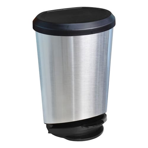 Esta lixeira com capacidade de 10 litros e fabricada em plastico resistente, complementada por um elegante acabamento em inox. Equipada com pedal, permite a abertura da tampa sem uso das maos, oferecendo mais higiene e praticidade. Sua cor preta com detalhes em inox a torna uma peca discreta e moderna, adequada para cozinhas, banheiros ou escritorios. Facil de limpar e manter, e uma solucao eficiente para manter seu espaco organizado e livre de residuos. Marca: Não Informado