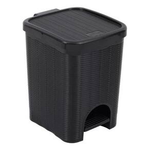 Lixeira com textura em vime 12 litros com mecanismo de pedal injetado em plástico. Prática e muito utilizada para o descarte de resíduos orgânicos e reciclável com total higiene, evitando contato das mãos para abertura do produto. Uso indicado: Chão.