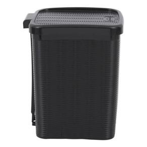 Lixeira com textura em vime 12 litros com mecanismo de pedal injetado em plástico. Prática e muito utilizada para o descarte de resíduos orgânicos e reciclável com total higiene, evitando contato das mãos para abertura do produto. Uso indicado: Chão.