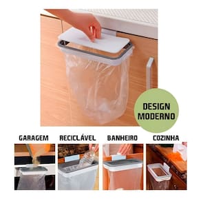 Funciona com saco plástico externo, permite uso mais fácil com higiene se necessidade de balde externo. O encaixe e desencaixe é muito simples e rápido, troque a sacola externa com muito mais rapidez. Para instalar apenas encaixe o clipe no local desejado e pronto! não necessita de fita ou parafusos, é muito fácil! Pode ser utilizado em qualquer ambiente: Cozinha, banheiro, quintal, garagem, escritório. Feita em plástico duro, material resistente e design prático. Economize dinheiro e reutilize sacolas de supermercado. Possui tampa para fechar o lixo e evitar odores e desorganização.
