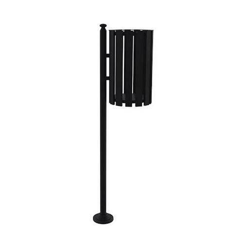 01 Lixeira de Rua Pátios Parques Simples Tubular Preta 151cm.