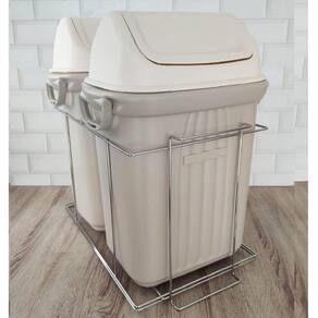 Garantia: 90 dias / Peso: 3,22kg / Cor predominante: bege / Ref: 7898187739393 Dimensões: 49cm (C) x 34,5cm (L) x 49cm (A); Dimensões mínimas do nicho de instalação: 49,5cm (C) x 35cm (L) x 69cm (A); Material: aço cromado, metal e polipropileno; Com torres de fixação; Capacidade: 19 litros cada lixeira.