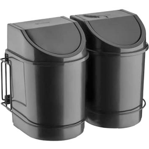 Lixeira Deslizante Dupla 24L Suporte Aramado Aço Carbono Preto Fosco com Dois Cestos de Lixo.
