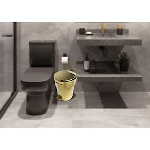 Lixeira Dourada em Aço Inox para Escritório Com Pedal 5L Novo Design Lixeira Dourada em Aço Inox para Banheiro Com Pedal 5L Novo Design Material Aço Inox e polipropileno plástico Dimensões do produto LixeiraAltura 29cmx20,5cm de circunferência Balde interno removível Capacidade 5L Peso aproximado da embalagem com produto - 1,5kg Revestimento Nitreto de Titânio Dourado Antimicrobiano - Não é pintura. Descrição A nova lixeira em aço inox com pedal com capacidade para 5L é totalmente em inox e possui acabamento interno emborrachado, com um balde interno removível e revestimento PVD DOURADO de alta durabilidade. Possui alça para transporte e uma ventosa em sua base para melhor fixação, evitando o movimento da lixeira quando o pedal for acionado. São características que tornam o produto mais prático para uso diário. Um acessório para banheiro que é portátil e prático. Agrega beleza e funcionalidade aos ambientes, pois possui um acabamento em alto brilho metálico, sem porosidades que evita o acumulo de resíduos. É higiênica e durável. Peça em aço inox de alto padrão. Para abrir basta pressionar o pedal localizado na parte inferior da lixeira. Dica Além de ser uma lixeira portátil e prática para se usar no banheiro, ela também pode ser funcional na sua cozinha. Importante Esse produto não oxida, não enferruja e nem mancha o piso ou bancada com o passar do tempo desde que as recomendações de uso sejam seguidas adequadamente . Produto altamente resistente a umidade. Revestimento antimicrobiano. Contém 01 lixeira com pedal01 balde removível 5L Recomendações de usoUse apenas sabão ou detergente e o lado macio da esponja. Outros tipos de produtos, como palha de aço, poderão riscar ou prejudicar o brilho. Enxágue bem cada peça a fim de remover totalmente os resíduos dos produtos de limpeza, que, por serem abrasivos, podem prejudicar o inox. Sempre que possível, use água morna, pois renova o brilho do produto. Após a lavagem, enxugue imediatamente o mesmo, caso contrário, as substâncias químicas da água cloro poderão causar manchas. Na lavagem manual evite atrito entre o produto durante o processo de lavagem e no armazenamento, para mantê-los sem riscos. Não recomendado também, o uso de máquina lava louças.