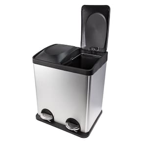 - 01 Lixeira em inox de 30 litros (2 compartimento de 15 litros) - 02 balde interno removível com alça