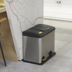 Eleve a organizacao e o estilo do seu espaco com esta lixeira seletiva de design sofisticado. Fabricada em metal inox de alta qualidade com acabamento cromado reluzente, seu visual moderno e elegante complementa perfeitamente qualquer ambiente, desde a cozinha ate areas de servico e escritorios. O detalhe do pedal cromado adiciona um toque de requinte e praticidade.
